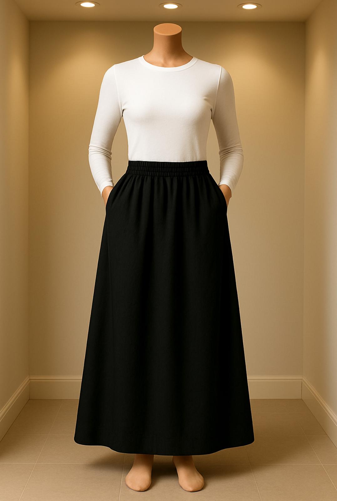 Lange donker blauwe katoenen rok – tijdloos en comfortabel