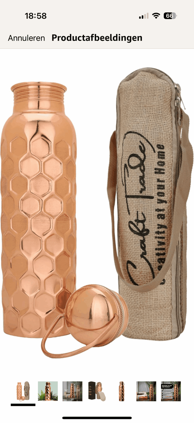 Als je een koperen fles of beker gebruikt: Gebruik puur koper, geen binnenlaag met andere metalen.